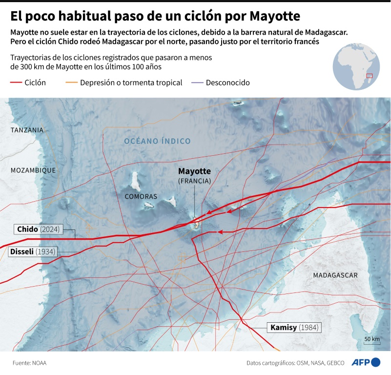 El balance del paso del ciclón Chido por el archipiélago francés de Mayotte ascendió a 39 muertos, indicó el martes el prefecto local.