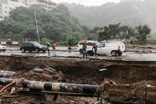 Las fuertes lluvias y los corrimientos de tierra dejaron un paisaje apocalíptico en los alrededores de la ciudad portuaria de KwaZulu-Natal (KZN); con carreteras reventadas y puentes derrumbados.