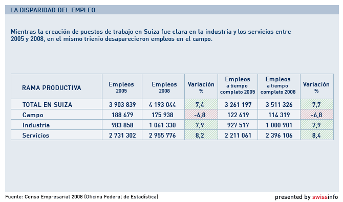 El Censo Empresarial 2008 recorre todos los recovecos de la actividad productiva suiza. La economía helvética creó 390.000 nuevas plazas entre 2005 y 2008.