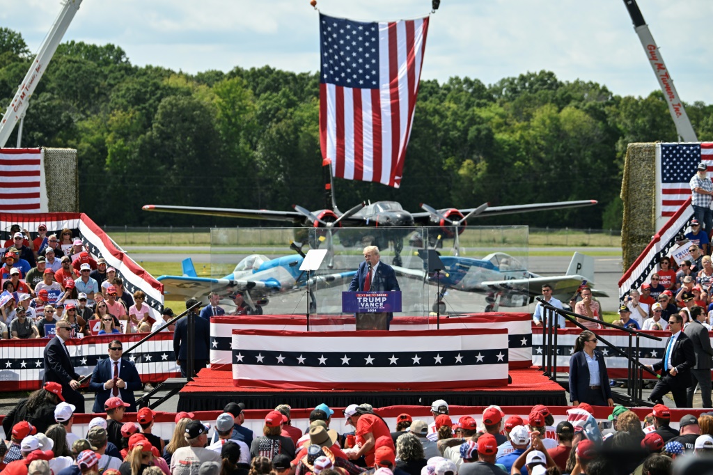 Detrás de una pantalla de vidrio blindada, Donald Trump afirmó este miércoles que millones de puestos de trabajo «desaparecerán de la noche a la mañana» si Kamala Harris gana las elecciones estadounidenses de noviembre, en su primer mitin al aire libre desde el intento de asesinato que sufrió en julio.