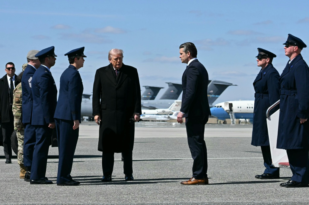 El secretario de Defensa, Pete Hegseth, y el máximo responsable militar estadounidense, Dan Caine, acompañaron a Trump, que no hizo declaraciones a los periodistas.
