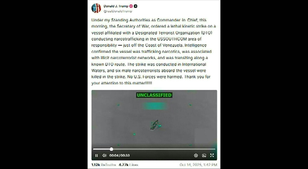 Hasta ahora ha habido al menos cinco ataques contra pequeñas embarcaciones de presuntos «narcoterroristas» con saldo de 27 muertos.