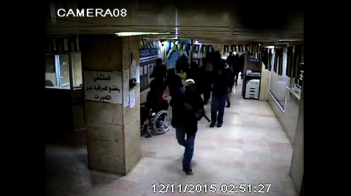 Imágenes tomadas por las cámaras de seguridad del hospital muestran a un pequeño grupo de hombres y mujeres entrando al mismo mientras empujaban una silla de ruedas en la que trasladaban a una mujer que parecía embarazada. Inmediatamente después entraron unos veinte hombres de civil que pasaron frente a un cartel que reza «Este hospital se encuentra bajo videovigilancia».