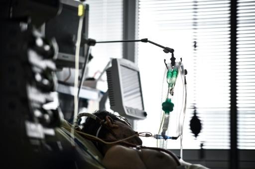 Un paciente de covid-19 con respiración asistida permanece en la unidad de reanimación del hospital Europeo Georges Pompidou, el 6 de abril de 2021 en París afp_tickers