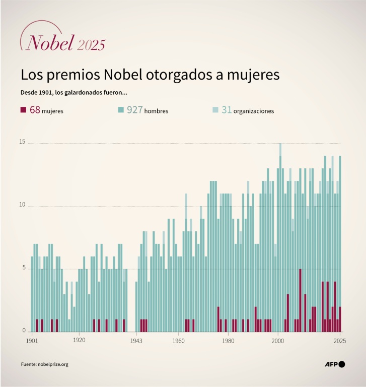 La líder opositora venezolana María Corina Machado recibió el muy esperado Nobel de la Paz. Machado dedicó el galardón al presidente estadounidense Donald Trump, quien no había ocultado su ambición de recibirlo.