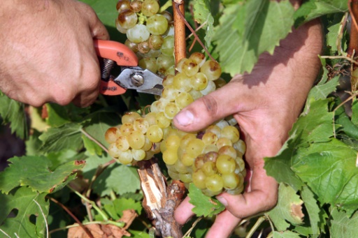 Un vendimiador corta un racimo de uvas en un viñedo de Rombeau, en Rivesaltes, al sur de Francia, el viernes 7 de agosto afp_tickers