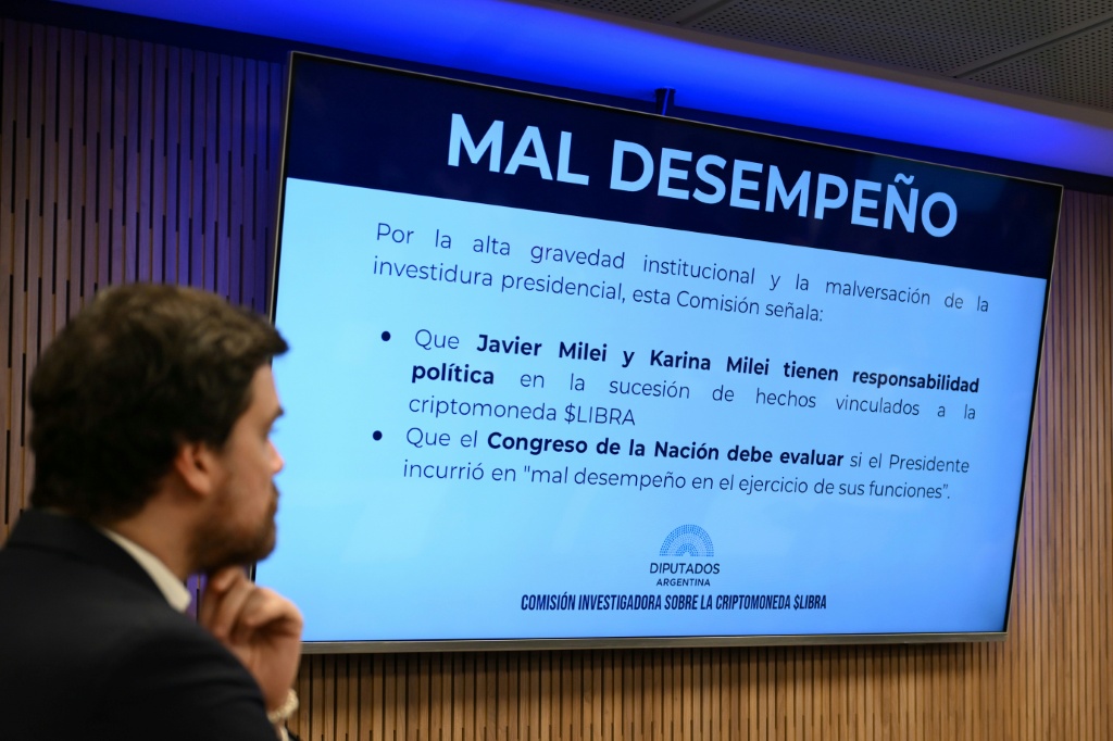 Una comisión investigadora del Congreso argentino, presidida por la oposición a Javier Milei, consideró este martes que la promoción de una criptomoneda en febrero por parte del presidente Javier Milei por la que inversores perdieron millones de dólares, podría constituir una «estafa».
