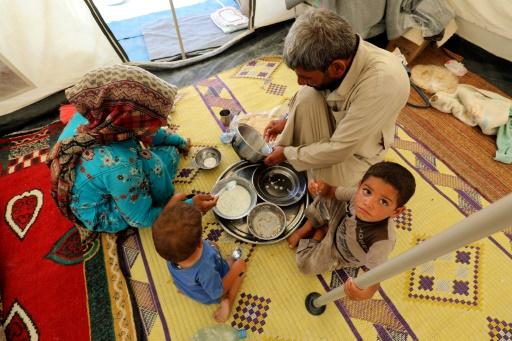 Una familia come el 11 de julio de 2017 en el campo de desplazados de Ain Isa, cerca de Raqa, en el norte de Siria afp_tickers