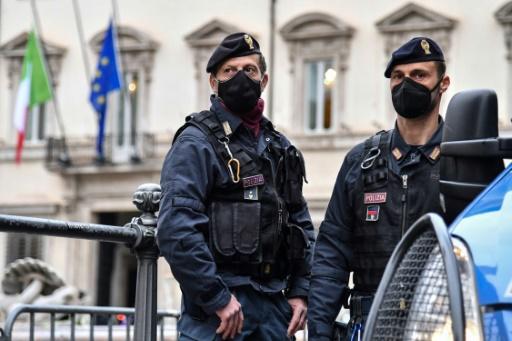 Dos policías italianos montan guardia frente al Palazzo Chigi, sede del gobierno, el 12 de abril de 2021 en Roma afp_tickers