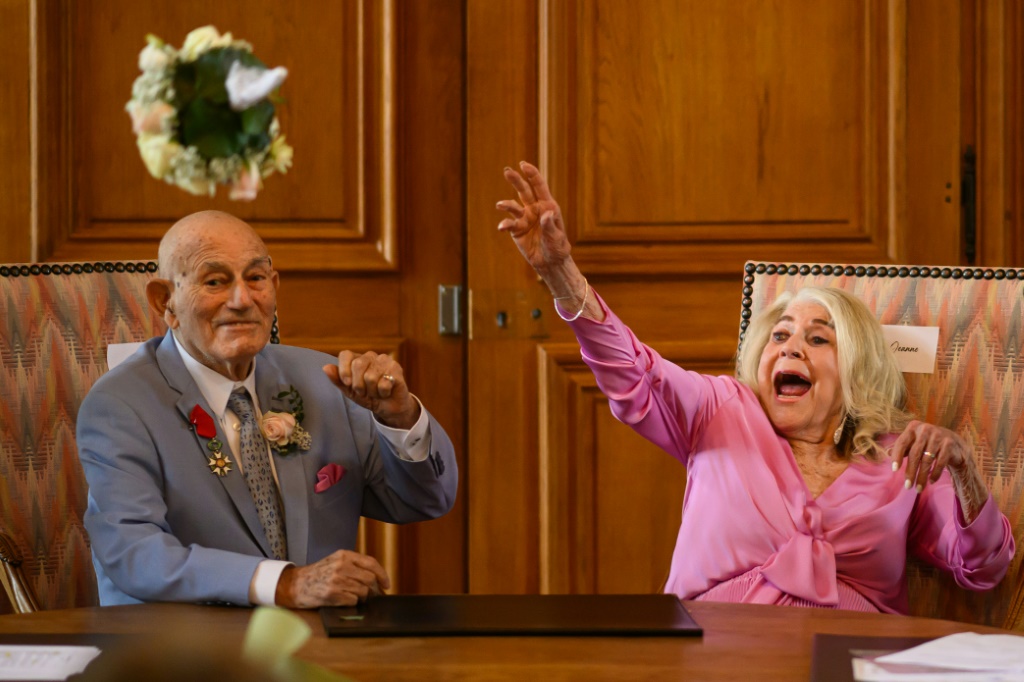 Terens y Swerlin, que viven en Boca Ratón, en Florida (Estados Unidos), se casaron después de que los aliados conmemoraran el 80º aniversario del Desembarco de Normandía, el 6 de junio.