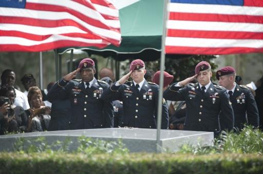 Members of the 3rd Special Forces Group, 2nd battalion salute the casket of US Army Sergeant La David Johnson, one of the three US soldiers killed in the Niger afp_tickers