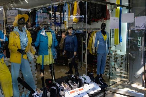 Buena parte de los carteles de comercios tienen el nombre en cirílico y abundan las banderas ucranianas o los colores amarillo y azul y carteles en contra de la guerra.