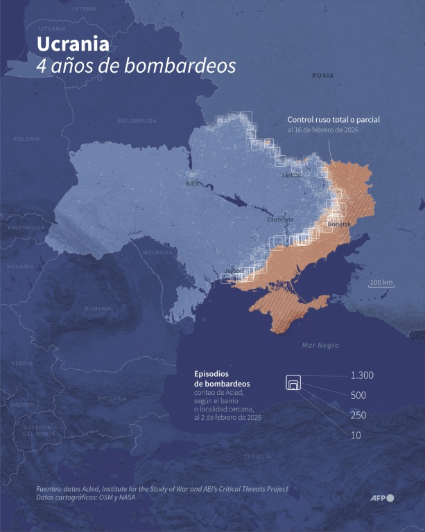 Rusia, que ocupa cerca de 20% del territorio ucraniano, bombardea a diario áreas civiles e infraestructuras, lo que ha provocado la peor crisis energética desde el inicio de la invasión, agravada por un rudo invierno.