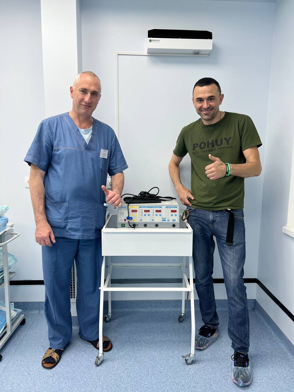 «Він сказав, що раніше він міг тільки мріяти про те, аби мати такий апарат у своїй операційній. З його допомогою він уже зміг зробити кілька складних операцій». Подібні апарати зазвичай надто дорогі або вони доставляються в Україну надто довго. Це вже говорить інший волонтер, Тарас Патлатюк, український науковець із Базеля, який допомагає зараз проекту Ambulance Relief.